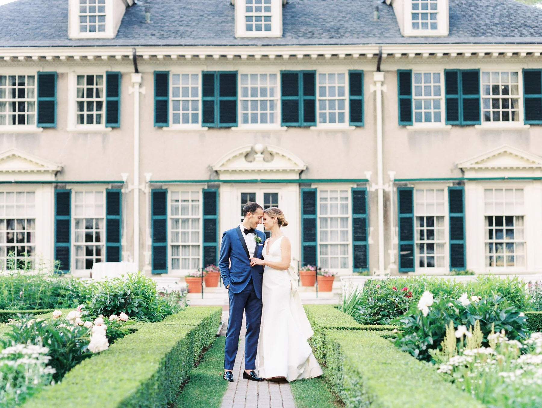 Emily and Jeff's wedding at the Hildene Estate in Manchester, Vermont began with a vision of a classic, romantic garden wedding. The abundance of rain in the Northeast helped fuel the beautiful blooms in the gardens at the Hildene. With breathtaking views of the rolling hills in Vermont and the incredible design by True Event, their big day was a pleasant visual feast for those in attendance.