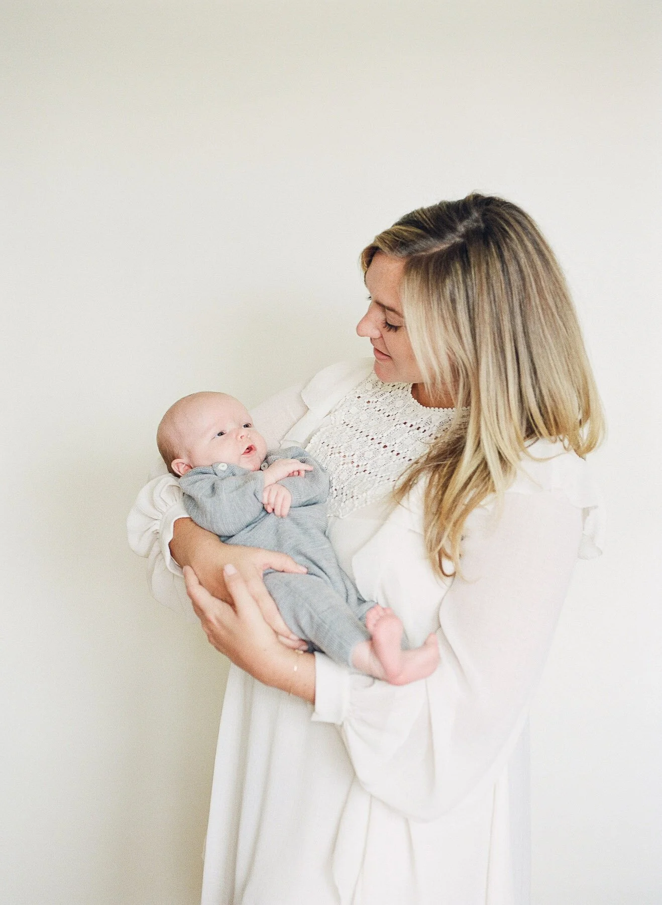 My mind works differently than yours, especially as a photographer. I see color as a way to bounce light back into the eyes of that special someone. Light reflects off of everything that surrounds us. Our clothing is no exception. I generally recommend neutrals or a cooler earth tone color palette for family portraits, especially newborn sessions, because those colors reflect a softer tone back onto the skin of those you are close with in your portraits. What are cool earth tones? Think grays and blues. I personally navigate to these colors, but that doesn’t mean you do as well. My mind is always thinking about the way light works and the way it reflects. If you love color, add it in some way to your look. Break up the color with a neutral top if you will be holding a newborn or small child close. I found this maroon dress that I loved for our own portrait session. To break up the color, I opted for a cream sweater and hat.