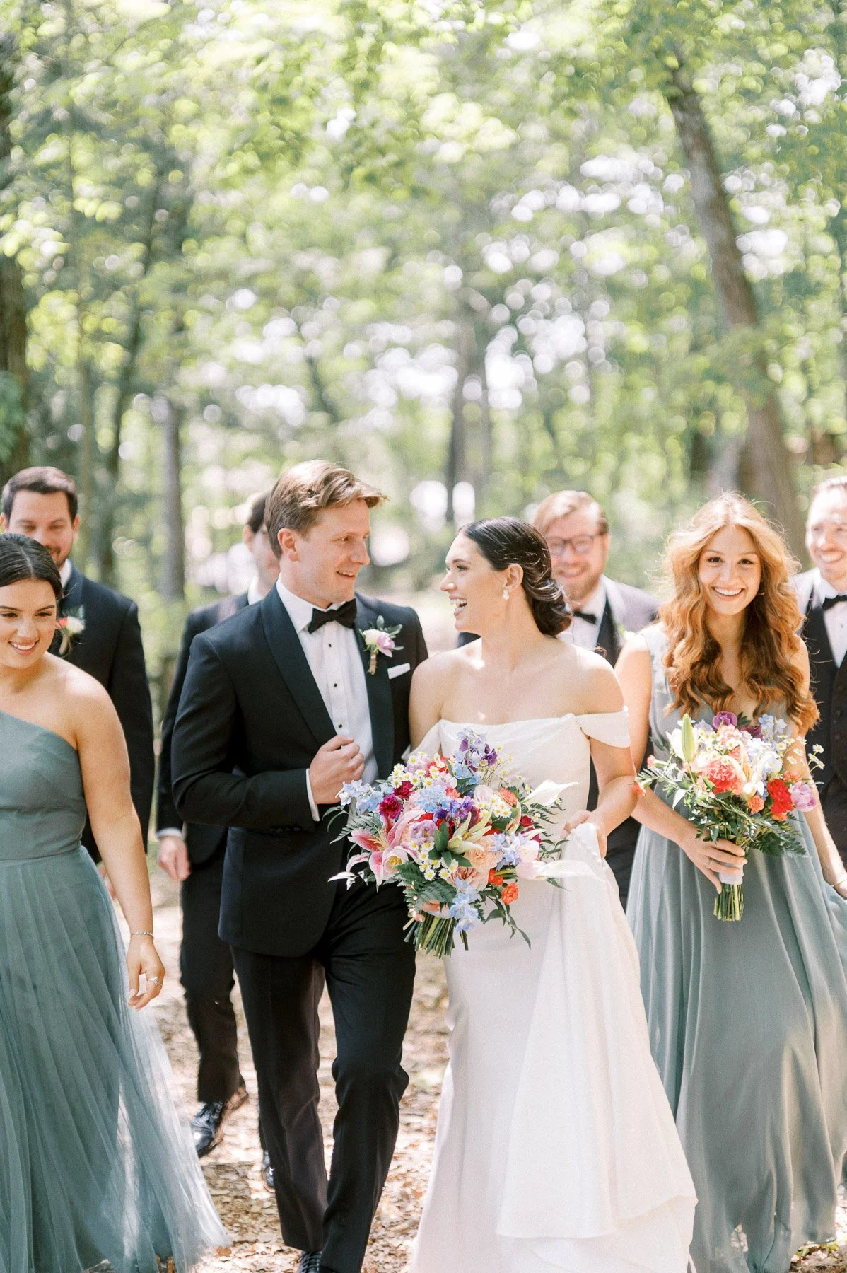 Inspired by the Tudor architecture of the Lake George Club, Erin and Ian envisioned an "English Garden" theme for their wedding, complete with colorful spring blooms and airy floral arrangements. Their love for the Lake George region and the Adirondacks—where they’ve spent countless summer days—shined through in forest-inspired touches like ferns, moss, butterfly accents, and woodland-themed invitations.